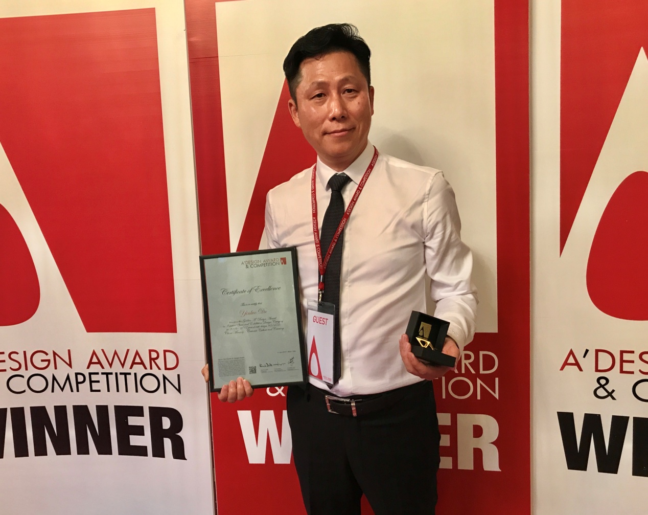 上海瓷憶文化餐廳設(shè)計獲得金獎,中航裝飾設(shè)計院院長易強(qiáng)作為設(shè)計團(tuán)隊主創(chuàng)設(shè)計師與楊超設(shè)計師、瓷憶品牌創(chuàng)始人杜銀羅先生一道應(yīng)邀參加了頒獎典禮。