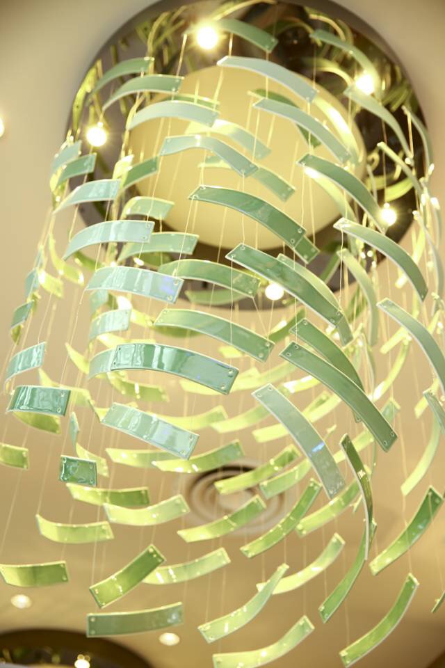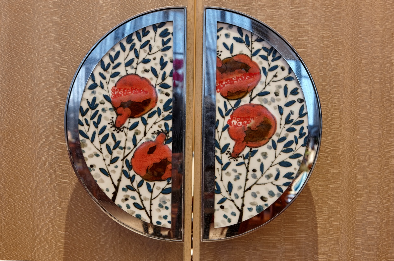 宴客大廳右側(cè)墻面一幅666個瓷葫蘆裝置畫,取葫蘆的諧音“福祿”,祝愿來賓福祿雙收生活福滿。
