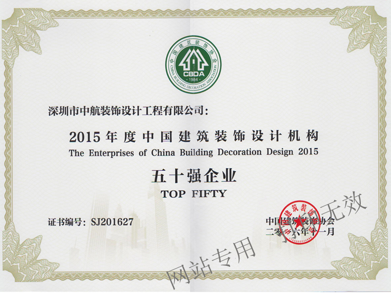 中國建筑裝飾設計機構五十強企業評選活動由中國建筑裝飾協會主辦,中國建筑裝飾協會設計委員會承辦,根據《中國建筑裝飾設計機構五十強企業評介活動辦法》所確定的原則和工作程序,由評介委員會專家組、工作組,對參評企業提供的各種數據及相關資料進行嚴密統計核算,經細致縝密的審核,評選出綜合得分前五十名的企業。此項評選活動,具有中國建筑裝飾設計機構設計水平和綜合實力評定的最高權威性。